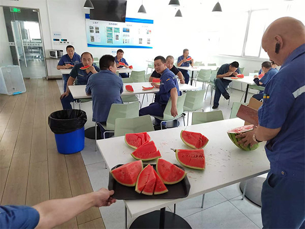 Due to the abnormal high temperature in Suzhou recently, the company has set up a cool post station in the company's restaurant, specially for our operators. The temperature of the restaurant is 25 °C, and watermelon is prepared to relieve the hot. When operators feel hot and thirsty, they come to the post station to take a rest. It fully reflects the company's care for employees and achieves "people-oriented".