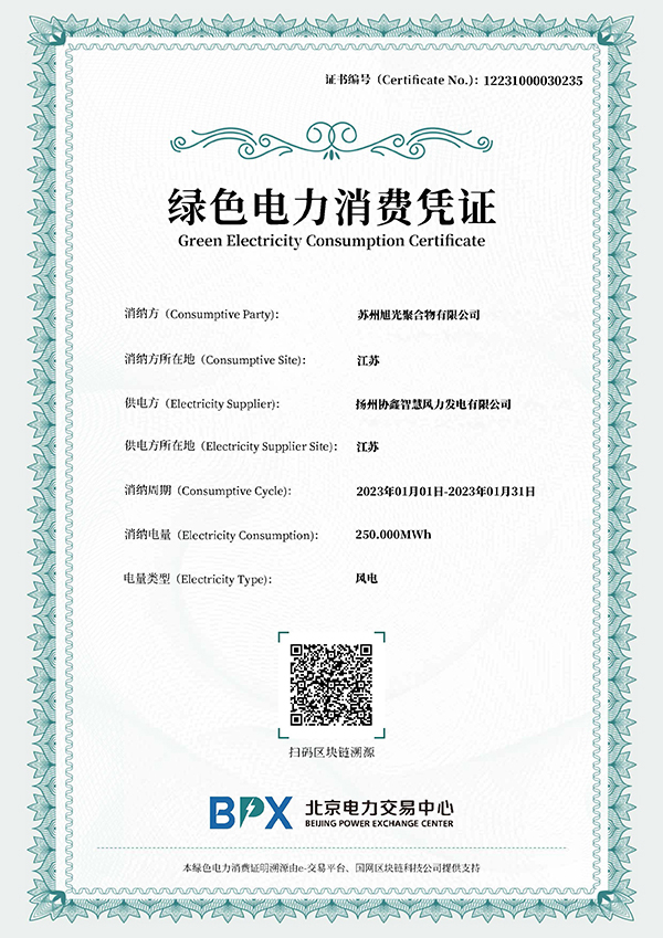 To achieve the 2 carbon goal, Suzhou Sunway Polymer uses green energy, wind power, as the part of its production and manufacturing energy. The utilization of wind energy will reach to 10% of the total electricity consumption in 2023 and is expected to increase to 30% by 2025.
