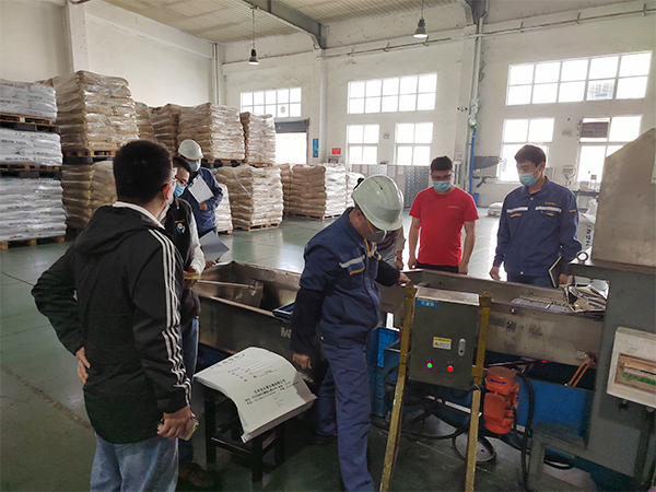 旭光将通过二次挤出造粒,帮助康迪泰克处理吹塑过程中产生的PA6废料。康迪泰克的质保和工艺工程师对旭光公司的挤出生产线进行了考察,双方讨论了挤出过程中需要关注的细节。