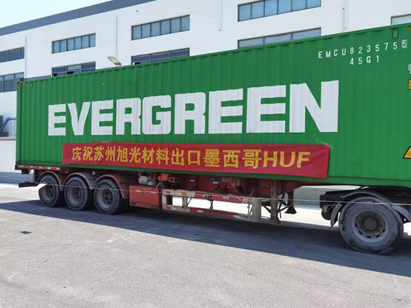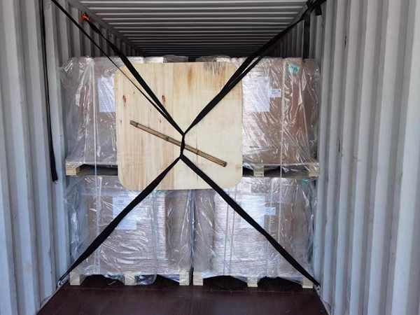 公司的玻纤增强PBT材料出口墨西哥HUF,今天成功装入集装箱发货。由于第一次采用八角箱的包装方式,在马贵栋的带领下,想出用尼龙带子固定的方法,避免海运途中的倾斜,成功实现2层八角箱叠加,成功装箱。