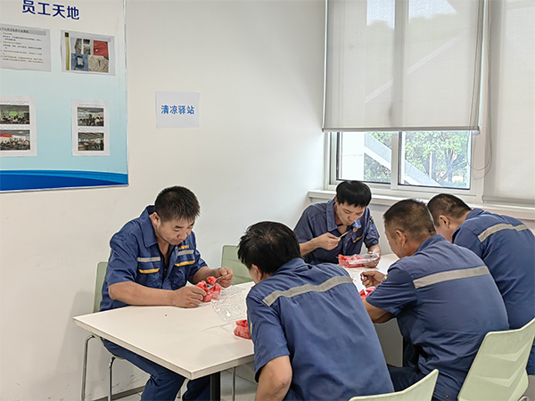 由于苏州持续10天来罕见的高温,公司为了一线员工的身体健康,特别在公司餐厅设立了清凉驿站,餐厅温度控制在25度,准备了清凉解暑的西瓜,员工热了,随时到驿站来休息。充分体现了公司对员工的关心,做到“以人为本”。